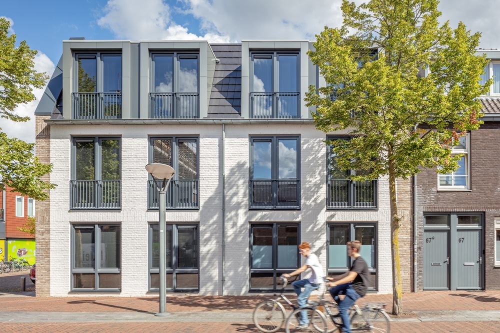 Door hetzelfde bouwprofiel, materialisatie en gevelelementen toe te passen ontstaat er samenhang in het ontwerp.