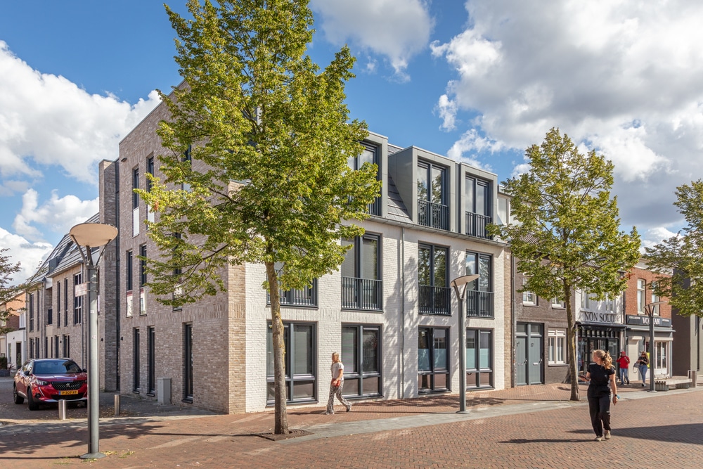 Op de hoek van de Bernhardstraat en Stationsstraat in Waalwijk is in opdracht van OTENTIQ een woongebouw ontworpen met 12 appartementen.